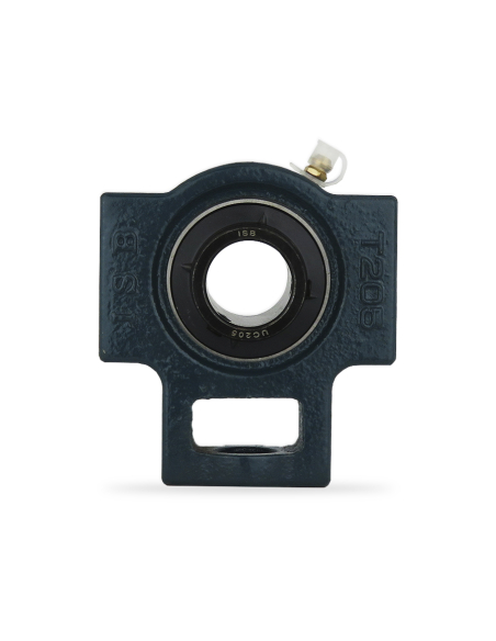 Cast iron tensioner support with UC206 inserted bearing for 30mm diameter shaft, self-aligning support support with ball bearing inserted with prisoners in the inner ring, sheet metal seal equipped with a nitrile rubber lip. Bearing with spherical outer rings for self-alignment and to compensate for alignment defects.